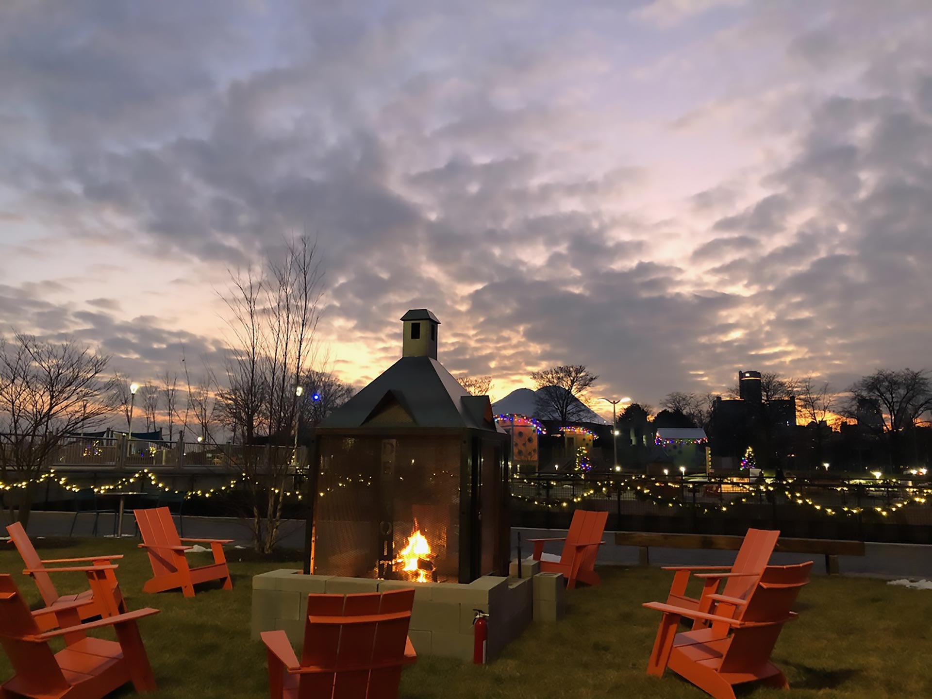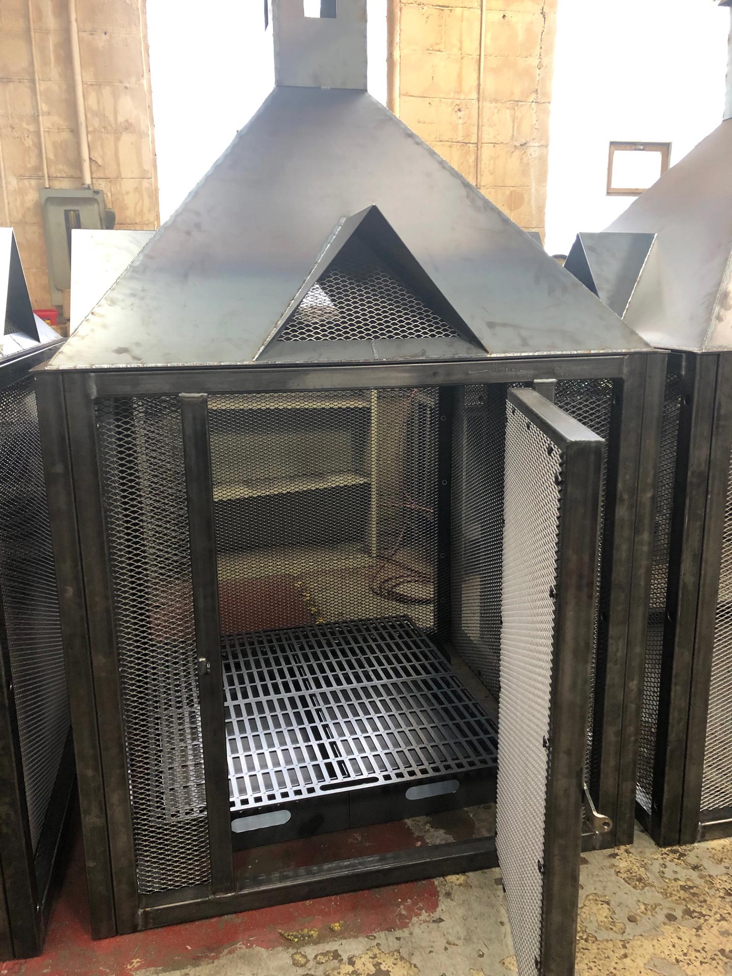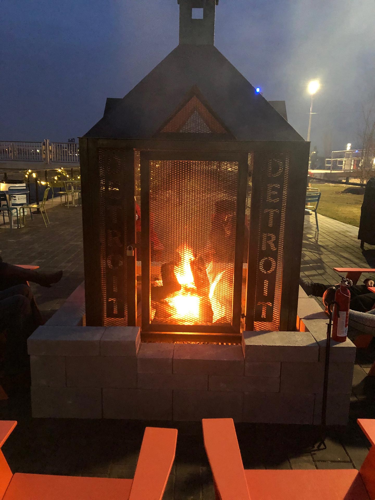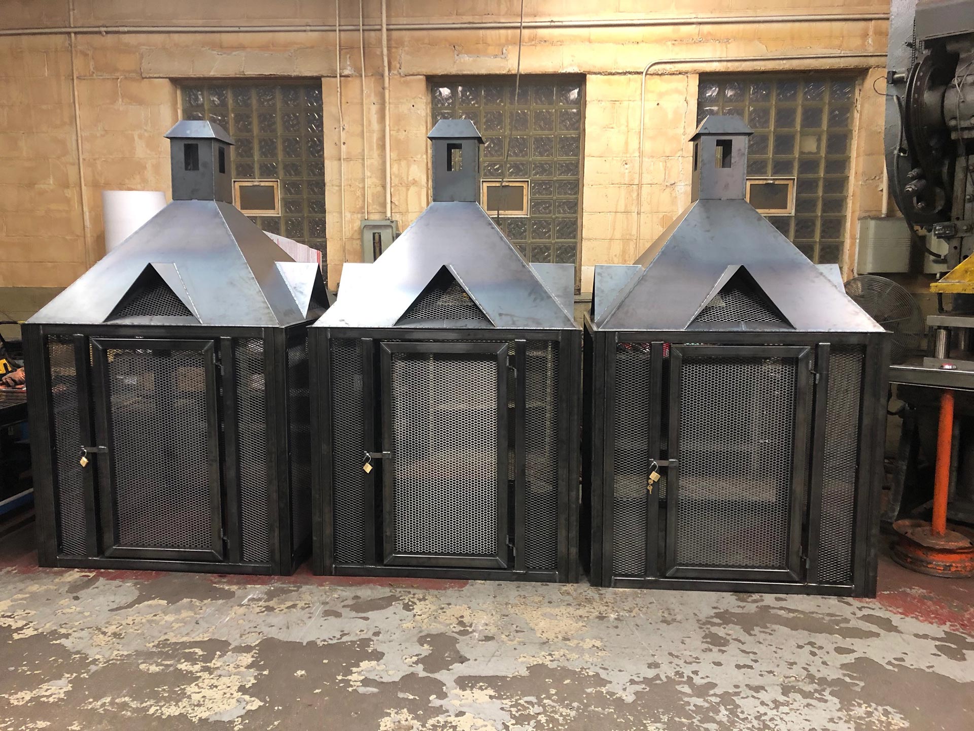 FireHaus 3 large FireHaus’ are the main attraction at this riverfront park. The 4’ x 4’ FireHaus’ are fabricated of raw steel, metal screens and a dormer roof with chimney.
